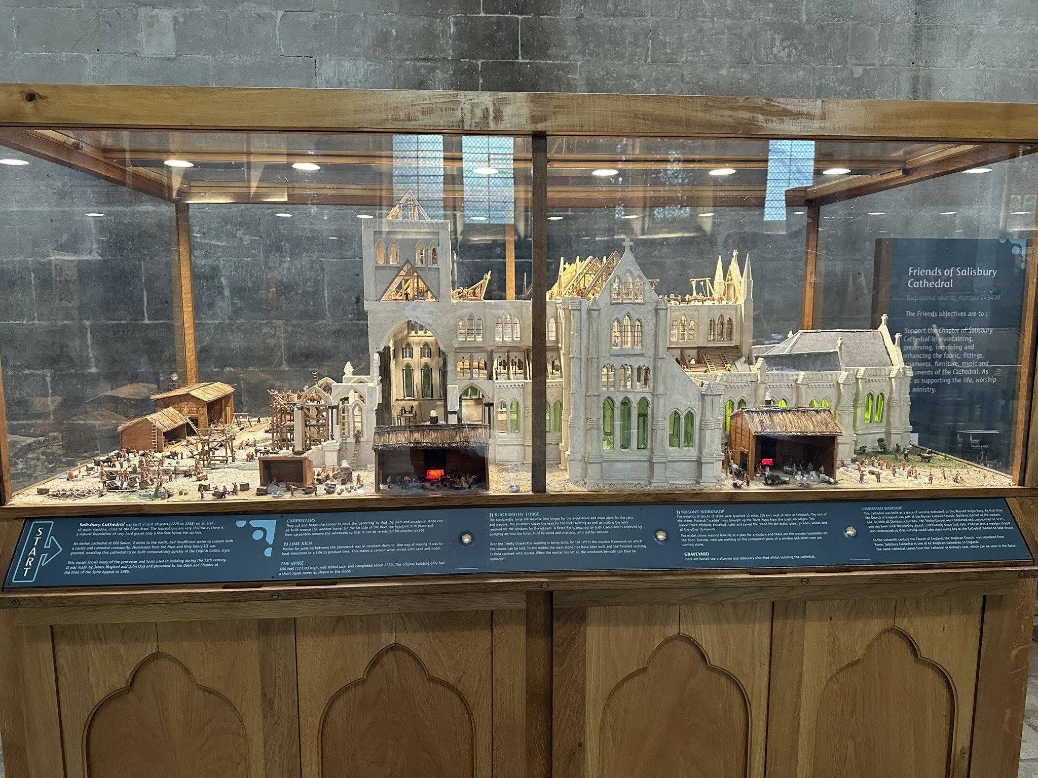 A model of Salisbury Cathedral still under construction, as it was when Longespée was buried there