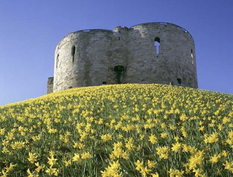 Clifford's Tower still stands above York, a squat stone keep on its grassy motte. Every year at this time, the mound fills with daffodils. To remember.
